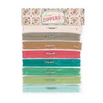 Kit includes panel to make 8 project bag, instructions, and zippers. From Lori Holt of Riley Blake.